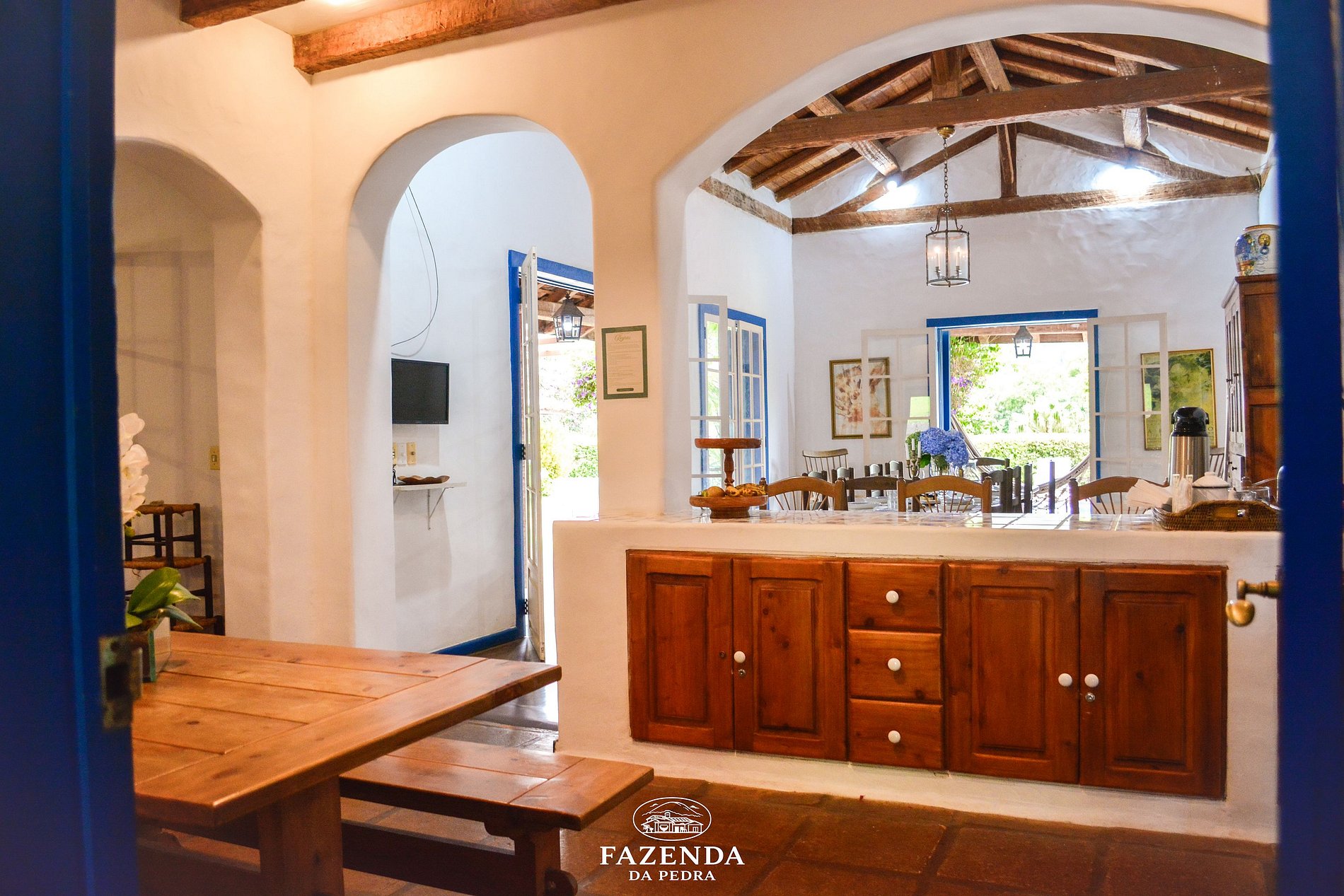 Casa Principal: * 4 suítes com ar-condicionado, sendo uma com cama queen e banheira * 1 Quarto com ventilador * Sala de estar * Área gourmet com churrasqueira * Cozinha equipada * Wi-Fi * Estacionamento gratuito