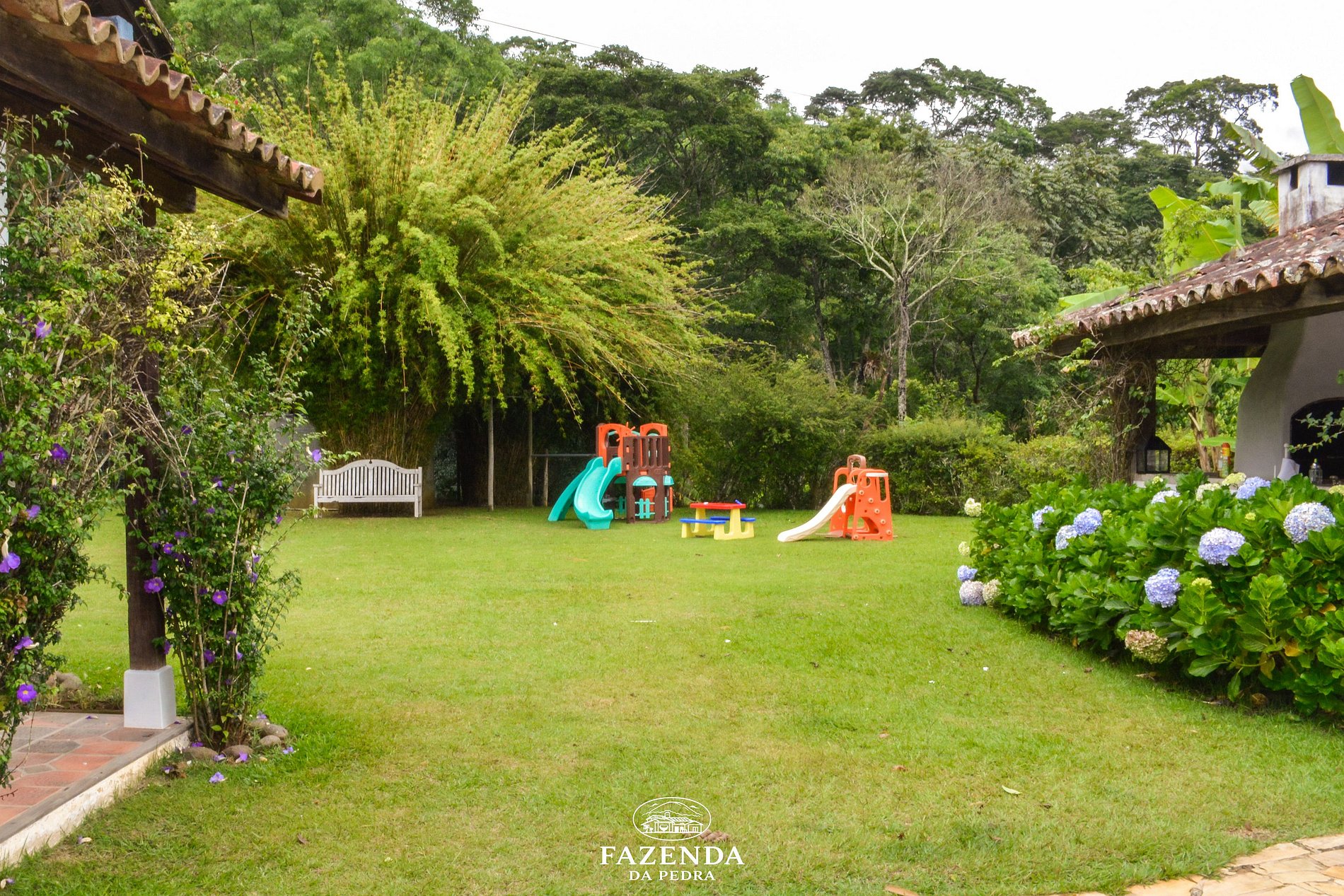 Estrutura da propriedade * Área de lazer: * Piscina * Quadra esportiva * Campo de futebol * Pesqueiro * Balanços em árvores * Ampla área verde
